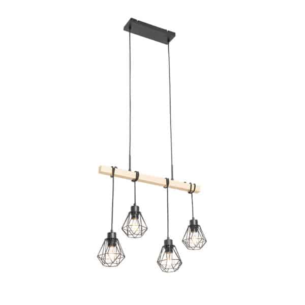 Land Hängelampe schwarz mit Holz 4-Licht – Chon hier online bestellen