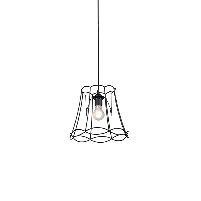 Die „Granny Frame“ Hängelampe besticht durch ihr durchdachtes Design und die Verwendung hochwertiger Materialien. Der Lampenschirm besteht aus einem filigranen Metallrahmen in edlem Schwarz. Dieser Rahmen ist nicht nur ein optisches Highlight, sondern sorgt auch für eine interessante Lichtstreuung und ein angenehmes Ambiente.